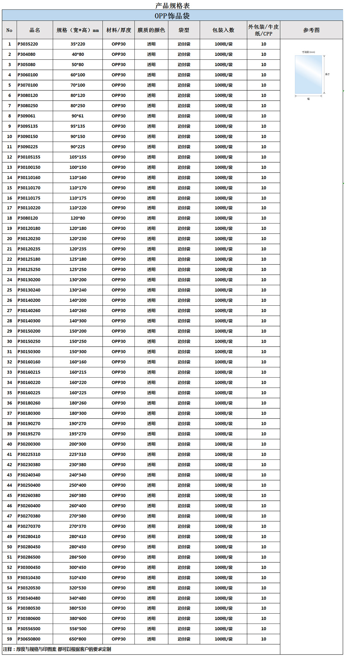 產(chǎn)品名稱:OPP平口袋 透明 |
